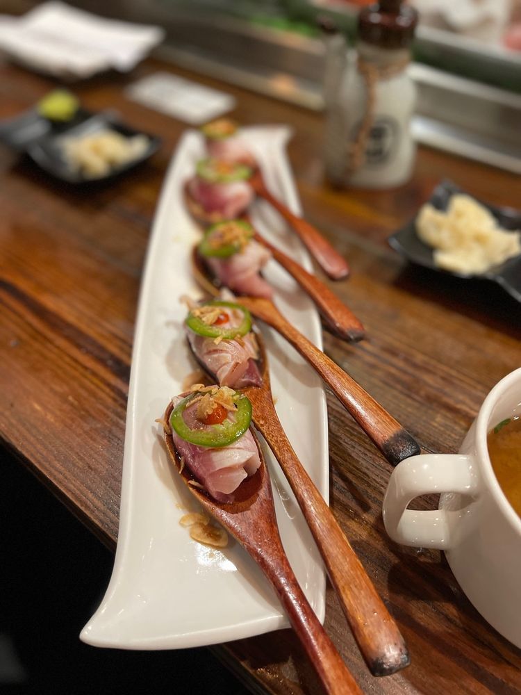 2) 10pc Omakase Nigiri: Loved it, they brought it out on long trays and explained each piece of fish to us. The fish was fresh and delicious. I think it was $60 per person which felt pretty fair for how good it was.